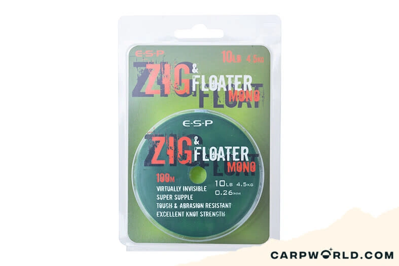 Zig & Floater Mono heeft een fijne verhouding tussen diameter en knoopsterkte, is taai en duurzaam en heeft precies de juiste hoeveelheid rek om het perfect te combineren met kleinere haken.
