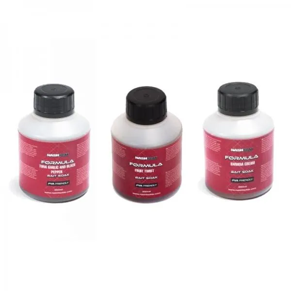 De Formula Bait soaks zijn perfect voor kanalen en grote wateren. De geur en smaak blijft geconcentreerd rondom je haakaas. Zo worden de karpers naar de voerplaats geleid. Laat uw boilies soaken in deze flavour. 50/50 water en flavour is voldoende.
