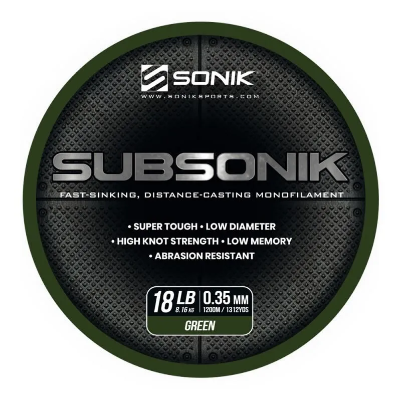 Subsonik is een superglad, hi-tech vislijn, dat is ontworpen voor de karpervisser die het allerbeste eist. Het is geformuleerd met behulp van een complex extrudeerproces dat zorgt voor een maximale sterkte met een beperkte rekfactor en is ontworpen om snel te zinken, waardoor detectie wordt geëlimineerd.